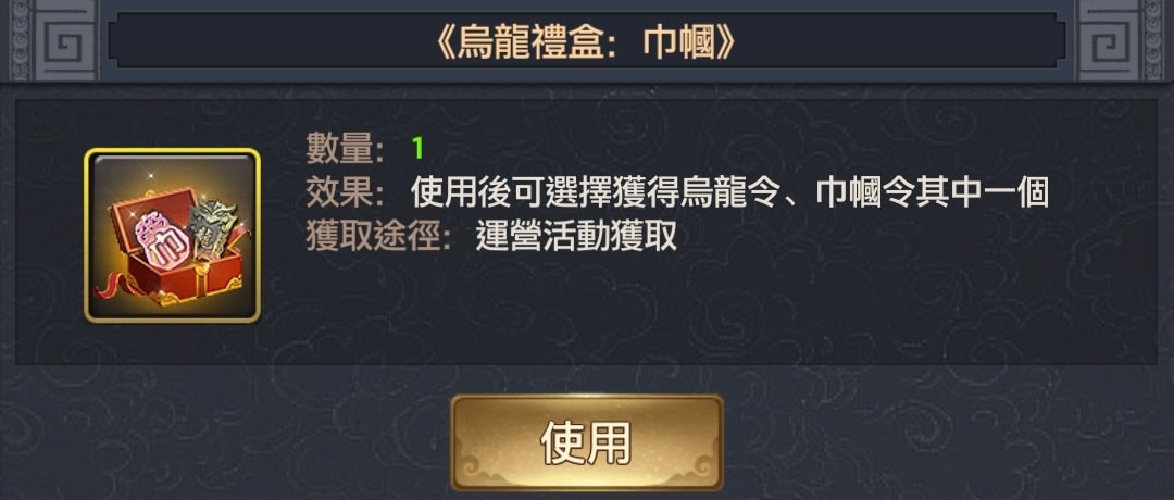 道具「烏龍禮盒:巾幗」,可任意選擇要烏龍令*1或巾幗令*1