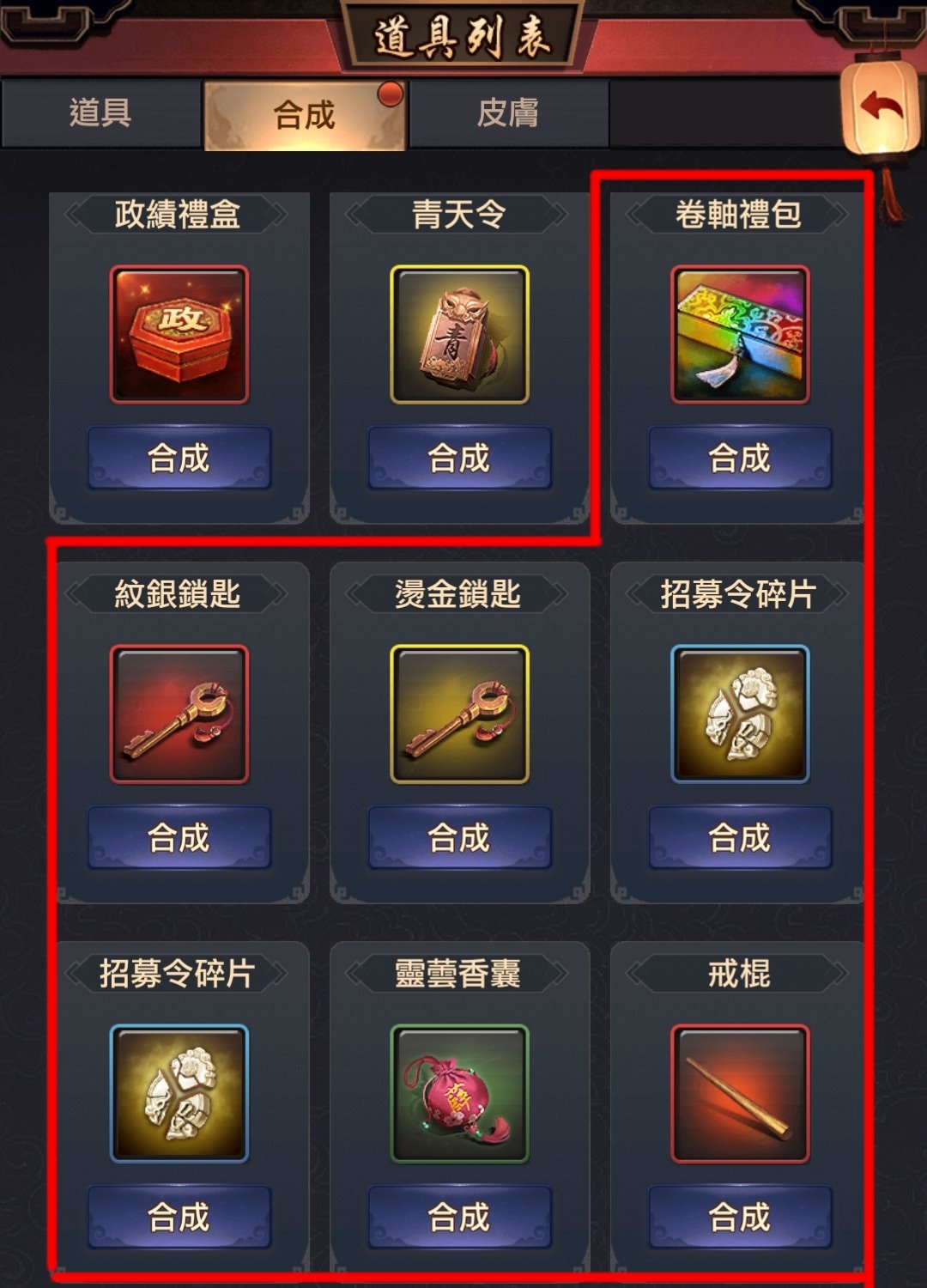 在解救桃花活動結束後,道具合成欄位可以把相關道具替換成下個接續桃花的活動「解救薛靈蕓」的道具。
