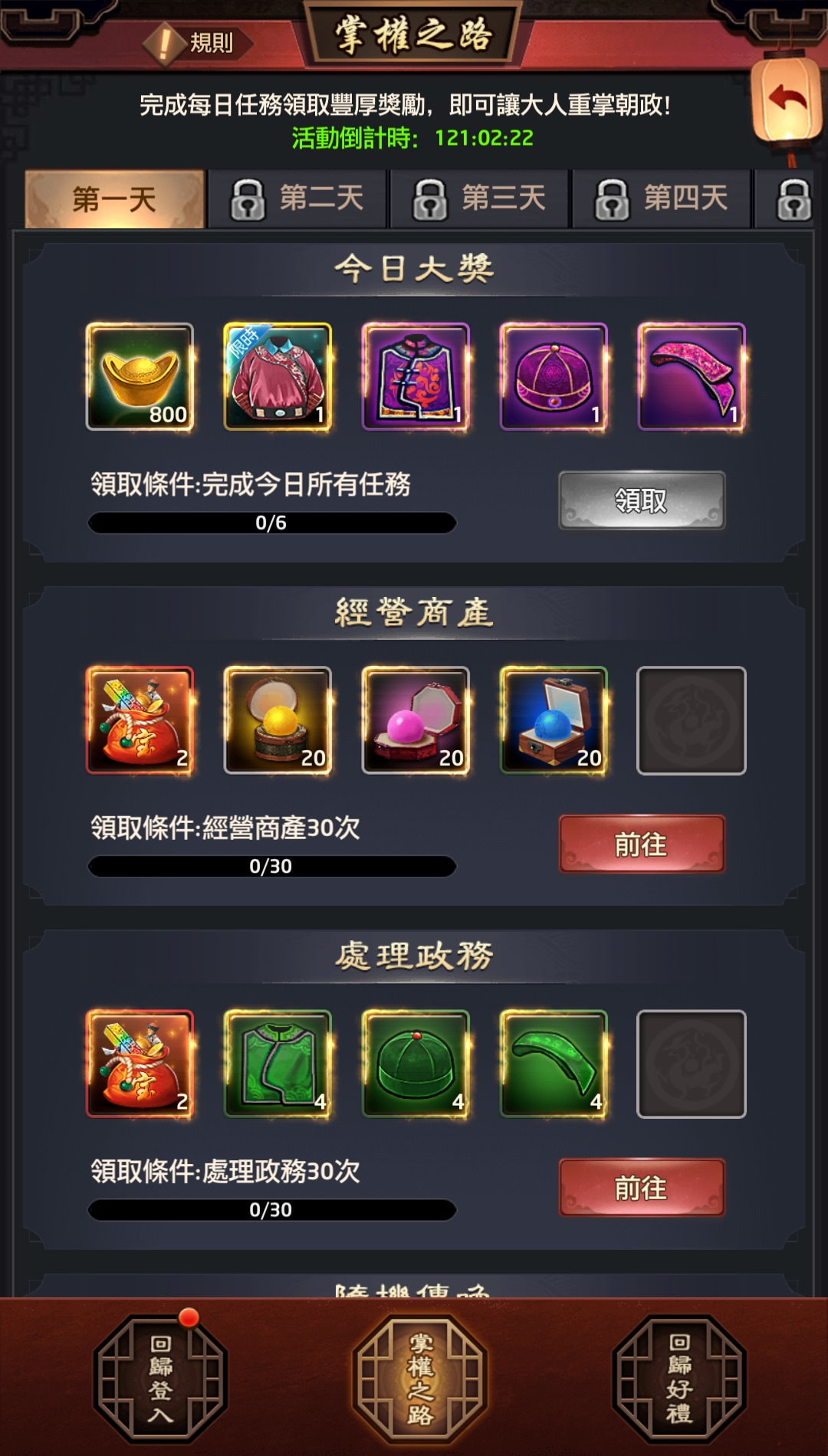 「掌權之路」是完成特定任務後領取獎勵。