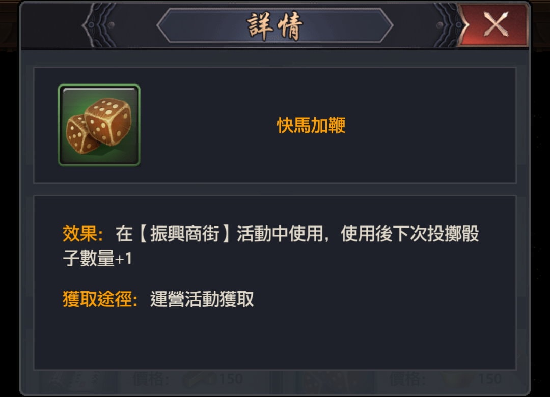 此外快馬加鞭圖示右上角有標示「道具」,應該是表示其他道具(強征契約、舉報信等)都會在活動後歸0,而這道具可保存至下次活動使用。