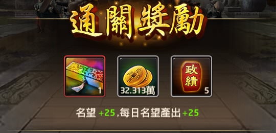 擊敗BOSS後能拿到「通關獎勵」,有不少關卡能拿到「強化卷軸禮包」,每日名望產出也會+25。