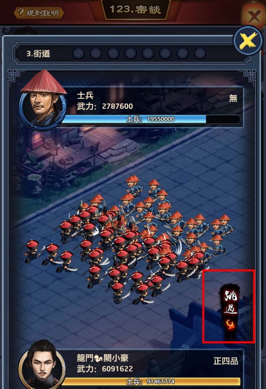 打小兵是看「武力屬性」,初期武力屬性要高,主要還是靠武力丹丸,武力丹丸主要取得方式: