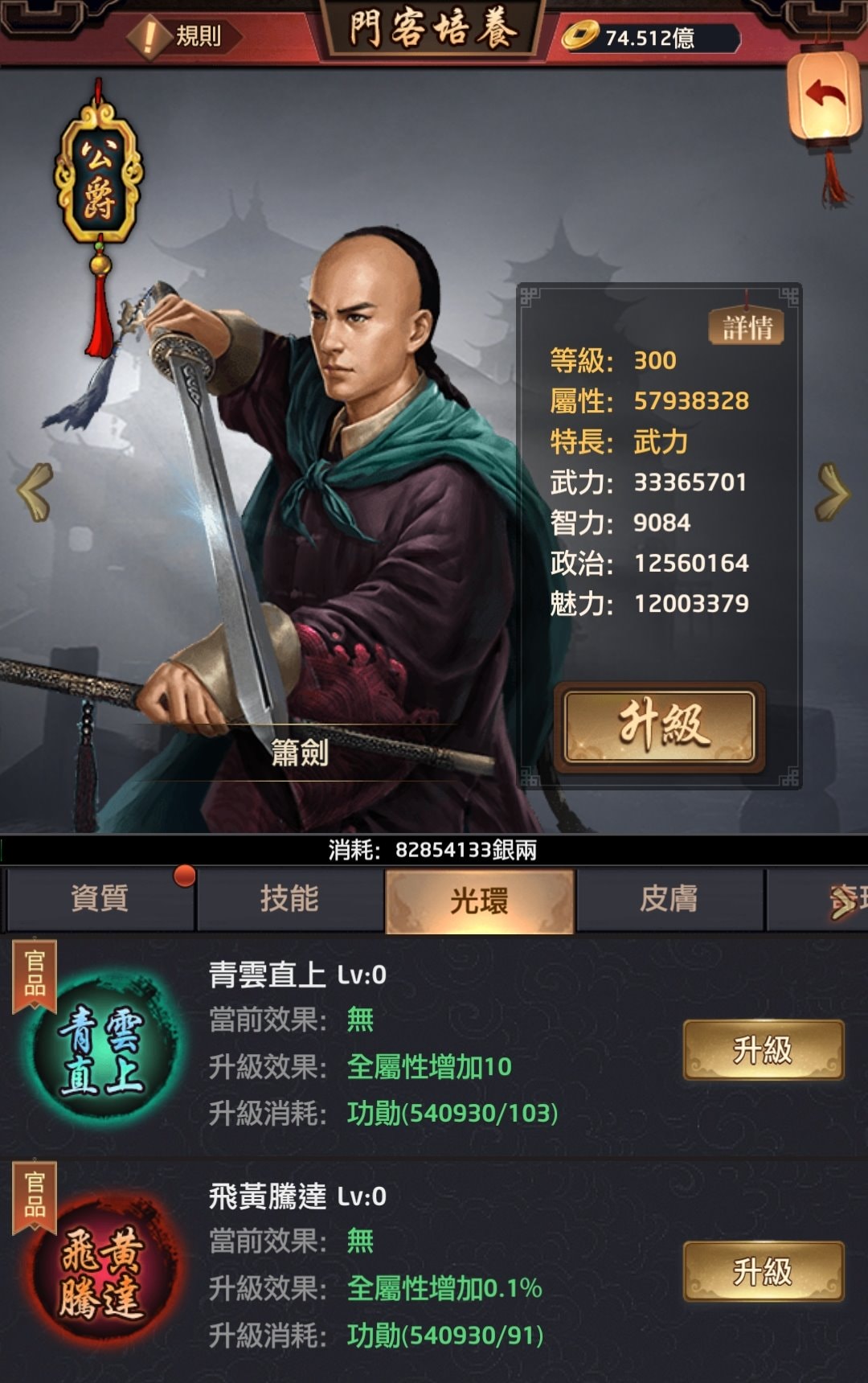 | 練功方向:每種屬性各自挑一位門客來練即可 |