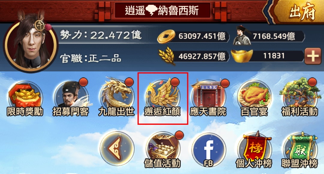 取得光環紅顏跟招募令門客相似,得在活動期間點擊「邂逅紅顏」。