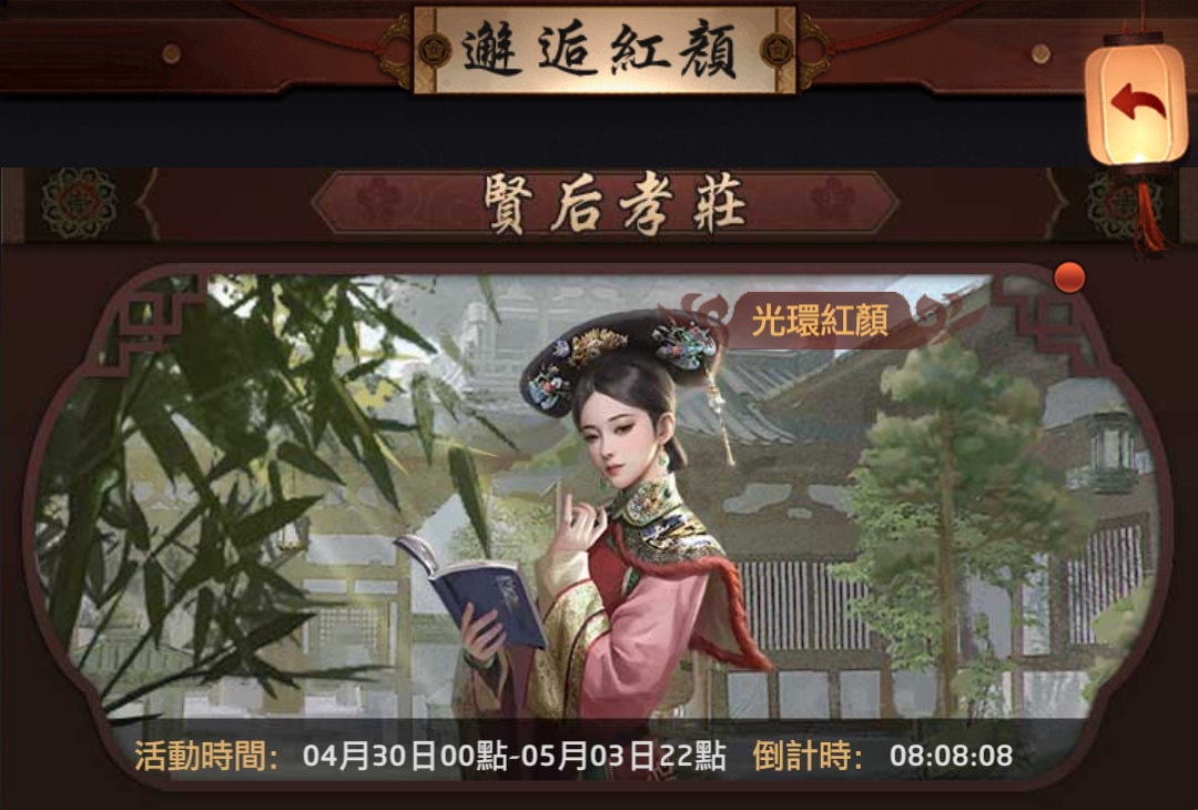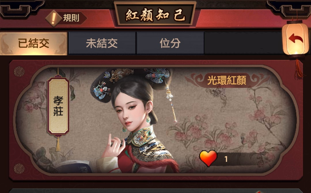 目前只有一位光環紅顏「孝莊」,對應的道具是「孝莊金寶」。