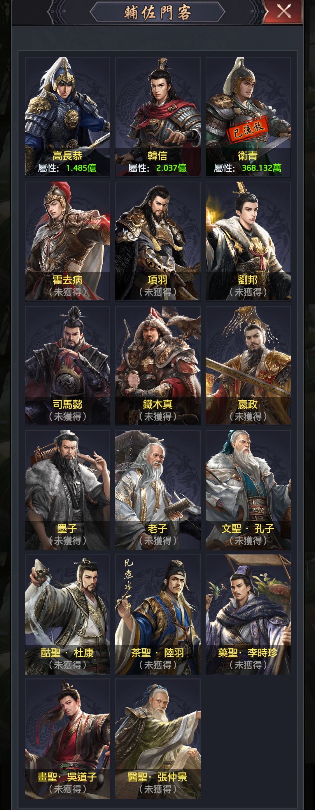 在V3.7版之前,紅顏門客(指招募令門客以外,靠紅顏加成屬性的門客)的屬性加成天花板就是:
