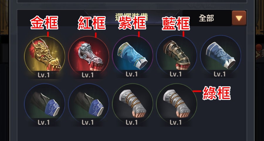 附註:以往遊戲中顏色代表等級高低的順序固定是金紅紫藍綠,這次可能是推出太急促,處處都有小bug。
