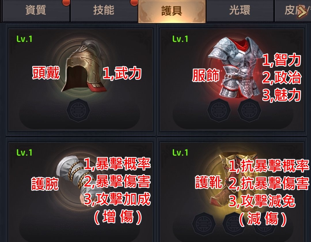 護具的概念也差不多,只是數字不同。