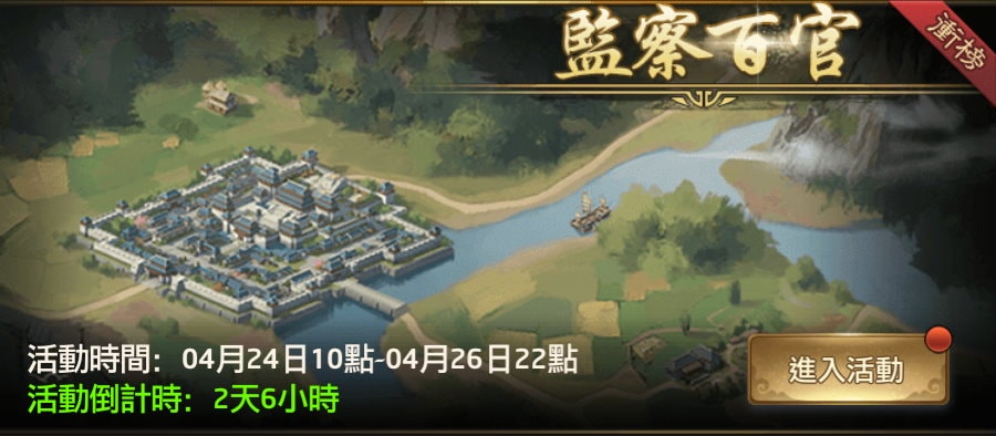 - 頭銜分為【知府】>【知州】>【知縣】,頭銜越高被全殲時產出活動分數越多。
