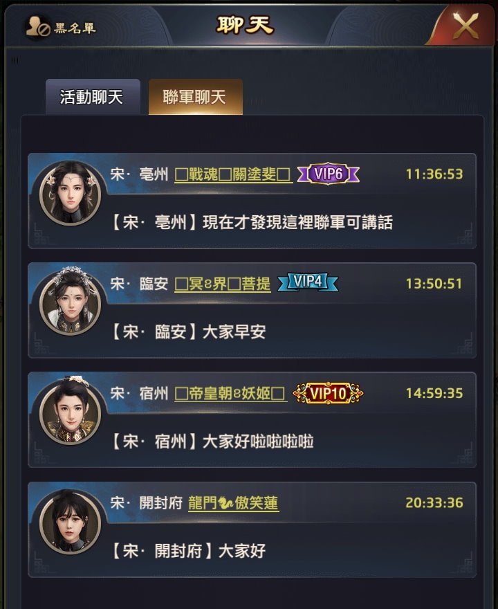 逐鹿中原新增「聯軍聊天」頻道,同個聯軍能透過頻道一起討論要先打那服等戰略,但很多玩家在多服都有小號,故資訊也不是完全封閉就是了。