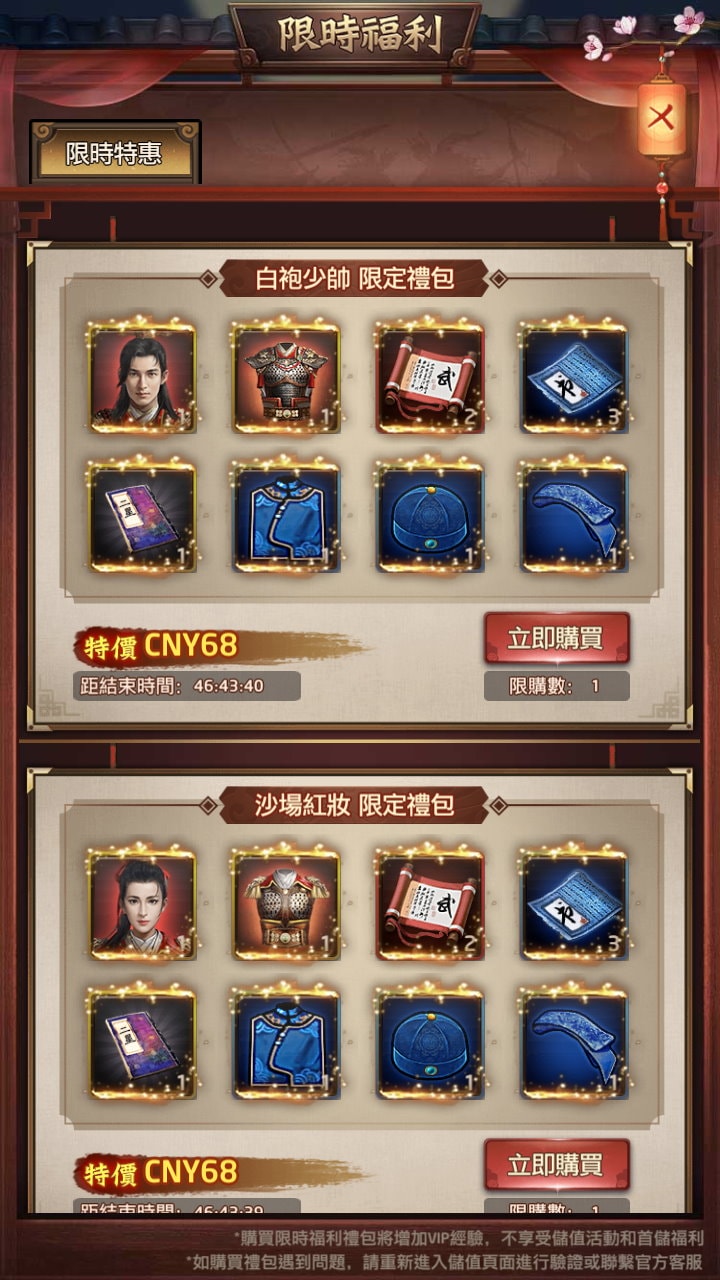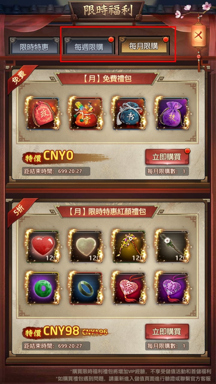 - VIP 17福利、VIP 18福利(新增門客2位、紅顏2位)