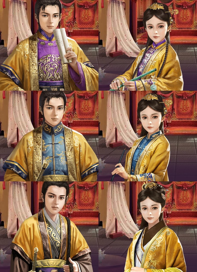 改版前子嗣科舉狀元只有一種樣貌,改版後屬性達2萬(下排)、50萬(中排)、100萬(上排)等都有不同的樣貌。