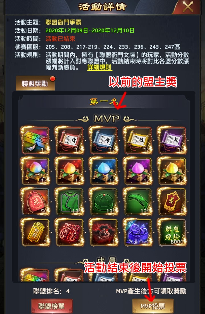 - 盟主獎勵改成MVP獎勵,活動結束後以有參與的聯盟成員投票決定。