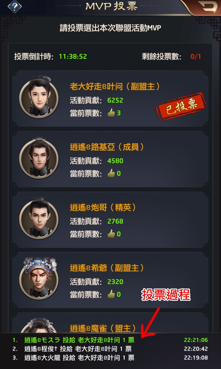 - 投票是1人1票,誰投給誰(投票過程)則會顯示在下方。