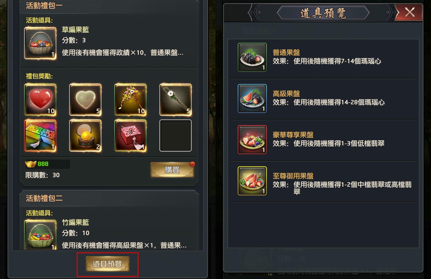 這個我也是10/26更新3V.4版(10/27強制更新)才發現的,福利活動(小活動)點「道具預覽」可以看到四種活動道具可以打到什麼道具,有何效果。以往都得實際購買並打到道具才知道內容物。