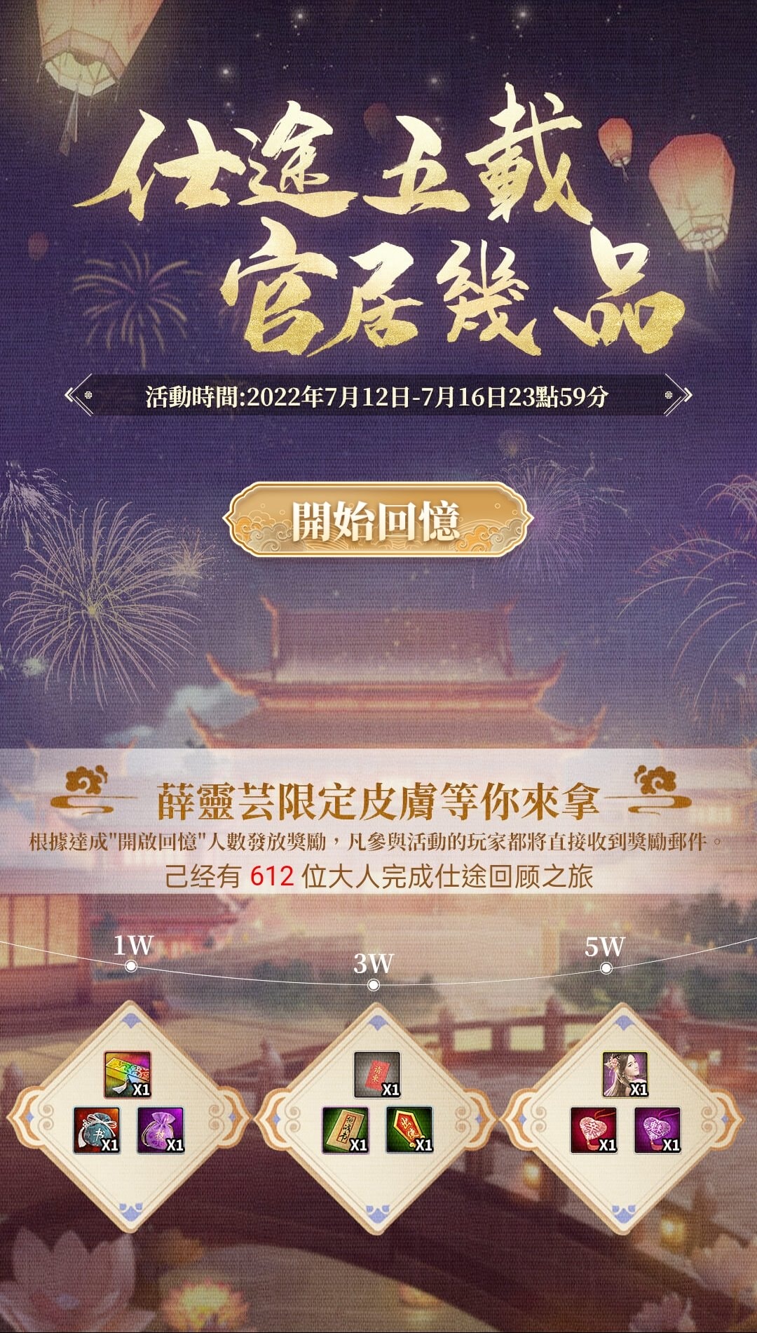 此外完成回顧的帳號超過5萬個,顧參與玩家都能拿到薛靈蕓「顧盼流轉」皮膚。