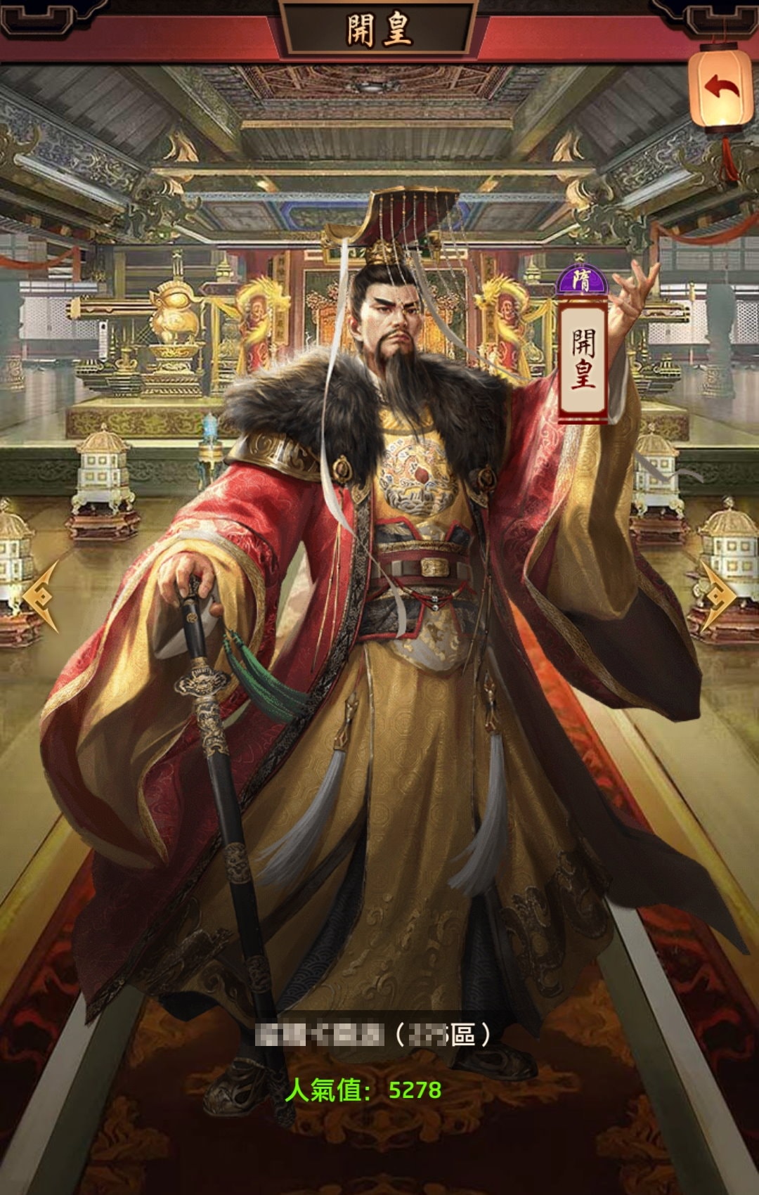 - 實名帝稱號的比拚看年代,越晚期的稱號順位越低,開皇是隋朝楊堅(楊廣父親)的稱號,是比遊戲當前最高的稱號唐朝(貞觀、武曌)還要高的稱號順位。開皇>貞觀 = 武曌