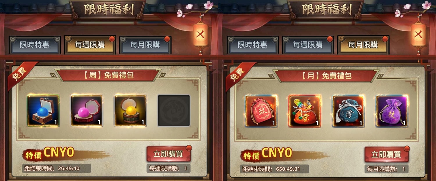 - 【周】跟【月】免費禮包被拿掉了,這是不儲值玩家的小確幸。