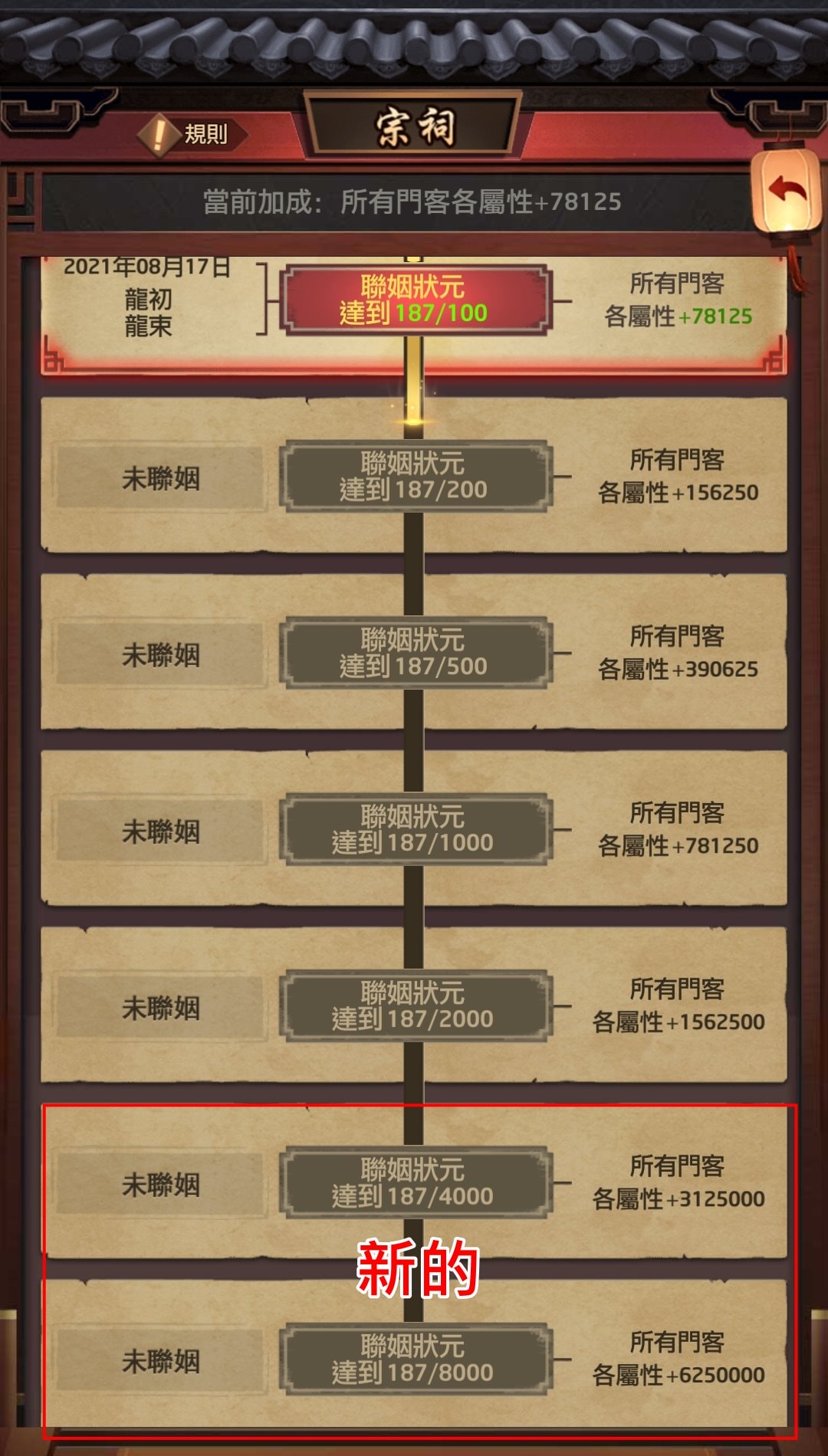 宗祠新增聯姻4,000次與8,000次的檔次。
