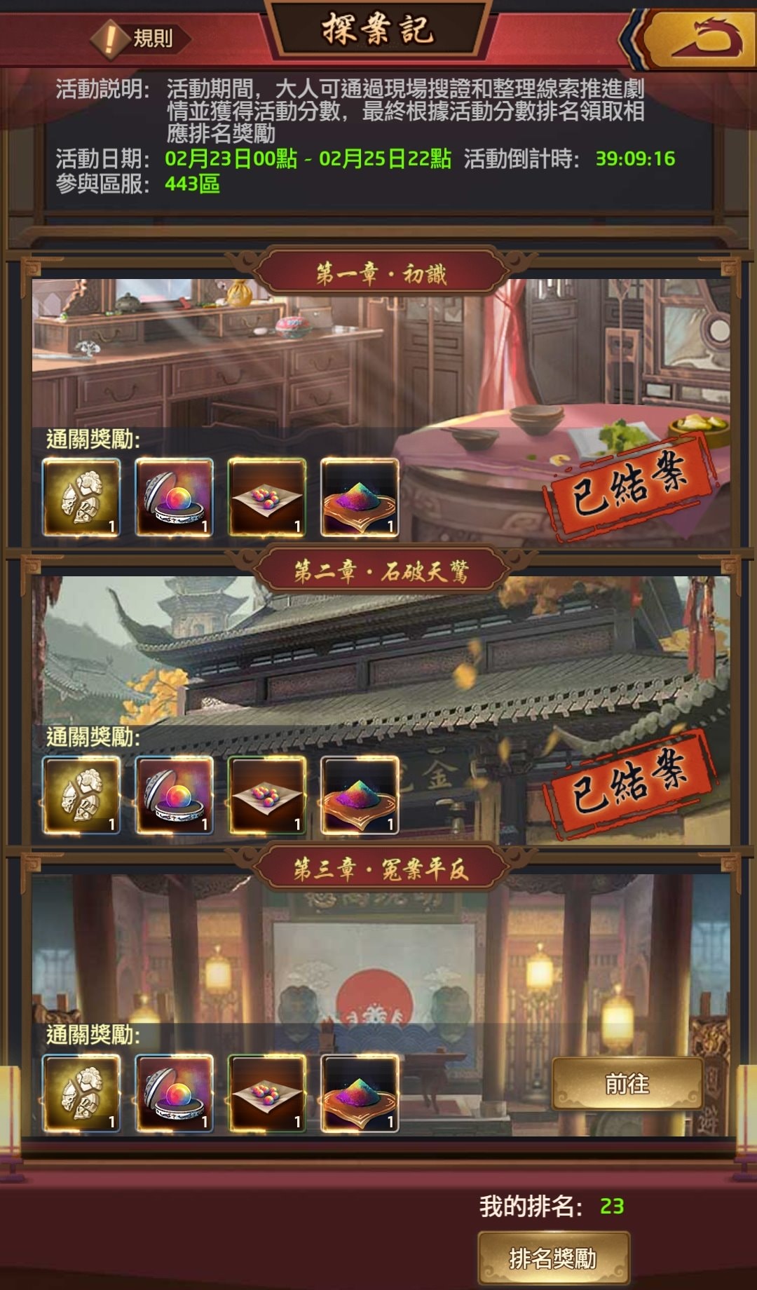 少年包青天Ⅱ聯動於2023/02/25結束,而國際版首次推出探案記活動是2023/02/23(新服),故歸類在V4.6版本。