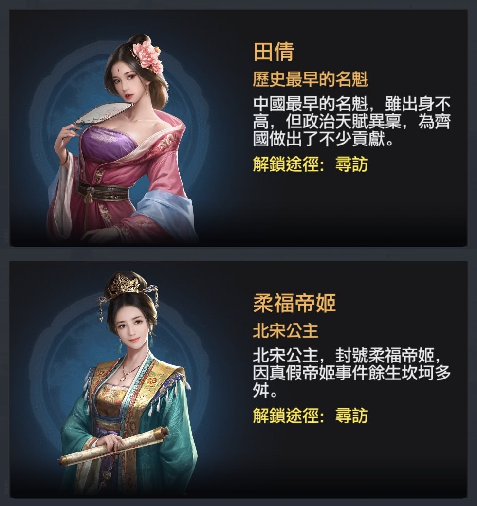 | 海蘭珠 | 先置條件尋訪 | 取得對應門客(大阿哥)後尋訪 | 1,000 | 大阿哥.胤禔 |
