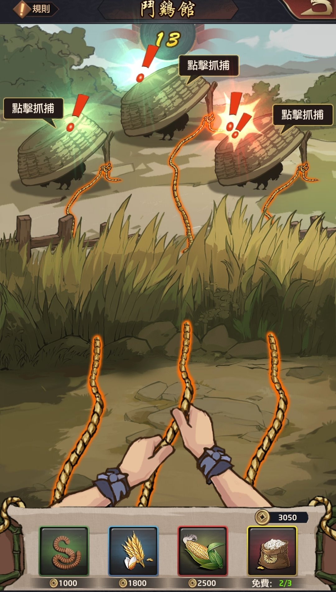 - 鬥雞館:抓補鬥雞一次出現三籠