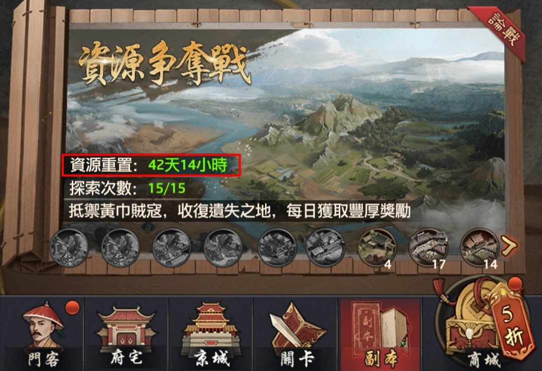 | 副本 | 蒙古軍來襲 | 圍剿噶爾丹 | 平定三藩 | 一騎當千 | 資源爭奪戰 | 全軍出擊 |