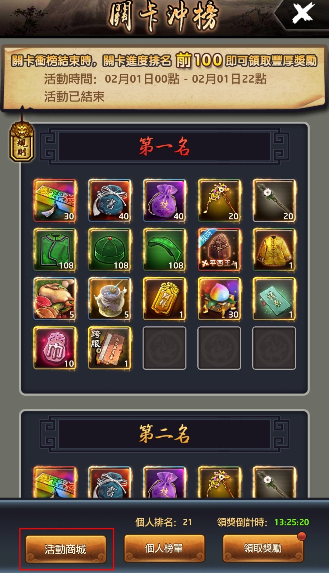 原本像是妖後皇陵那些衝榜才會在介面中放置「活動商城」,改版後幾乎所有「主衝榜」(就連資源消耗類衝榜)都會放置活動商城,。
