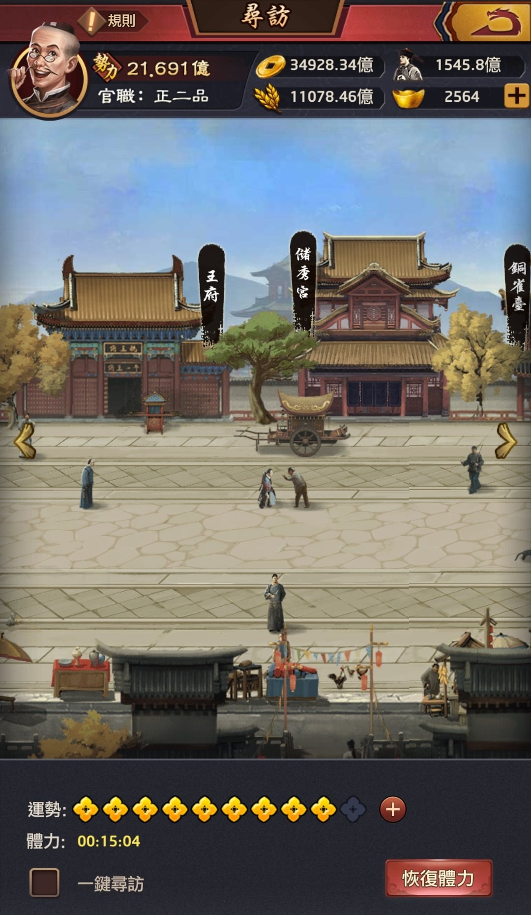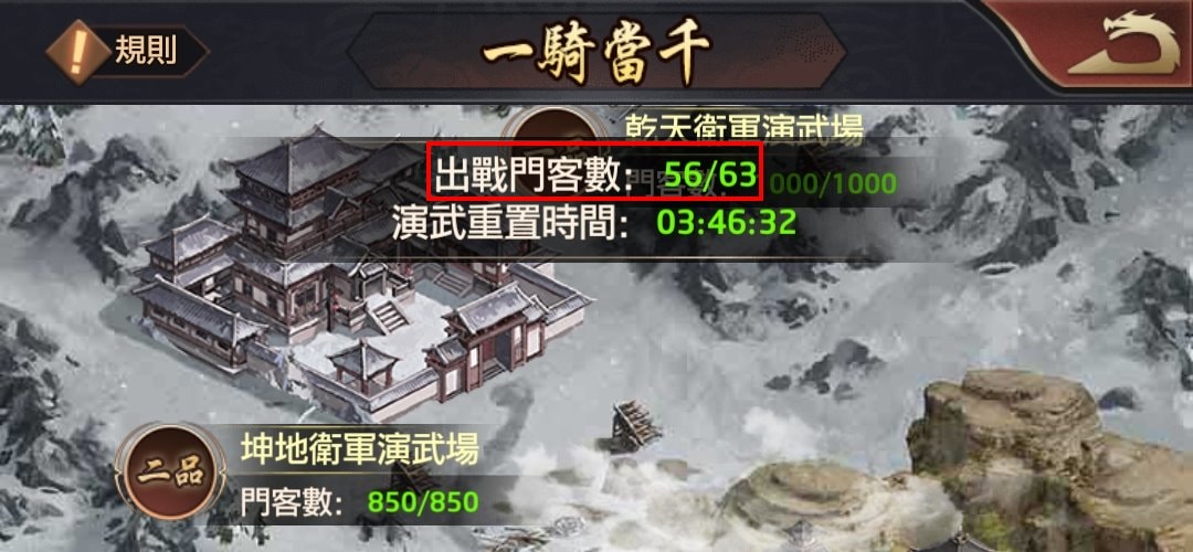 - 衙門:挑戰時顯示對手ID、勢力、門客數量