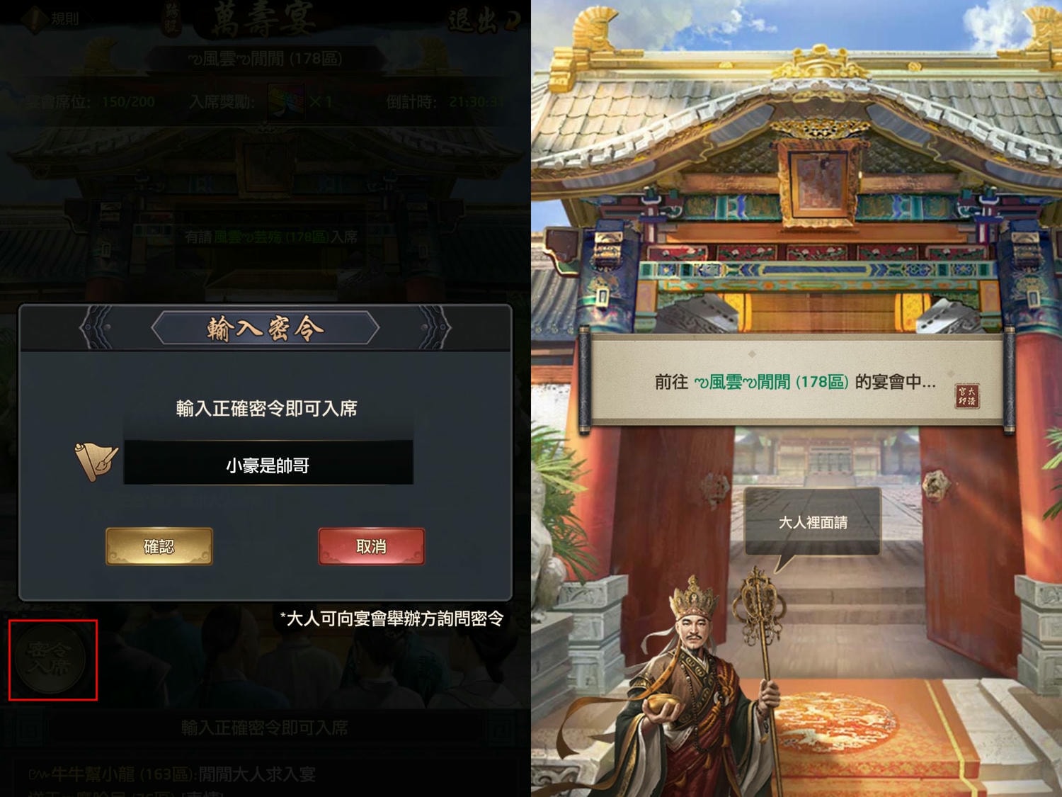 以前「百官宴」是任何人都可以點申請入席,加上外掛(功能較完整的)都有自動申請百官宴的功能,導致開百官宴完全成了折磨開宴者的系統,得在上千筆資料中找到想讓其進來領卷軸禮包的玩家,或是靠編號來篩選。