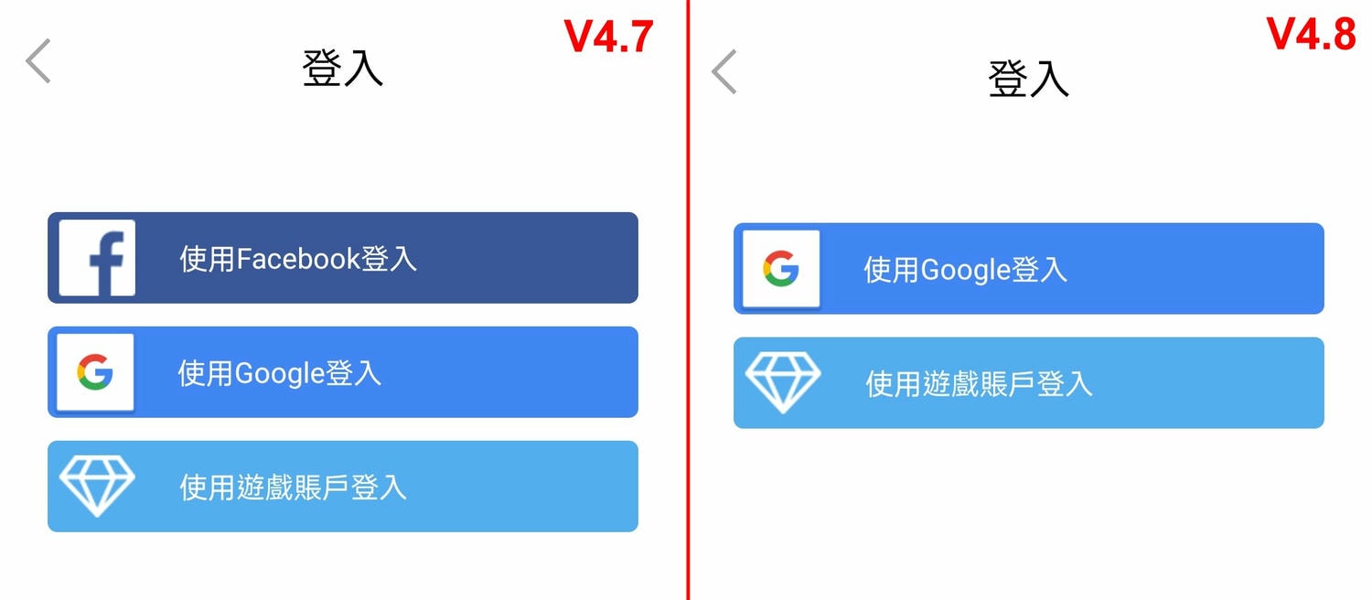 在上個版本停止使用Facebook帳號登入遊戲後,新版本也移除FB登入紐。