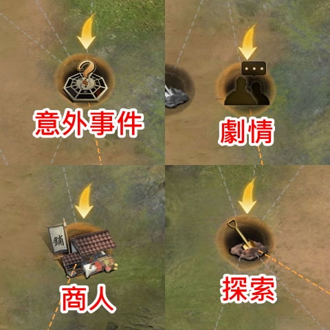 事件據點有4類:商人、探索、劇情、意外事件,細節我獨立寫成一篇文章:《叫我官老爺》征討白蓮教:事件據點與種類
