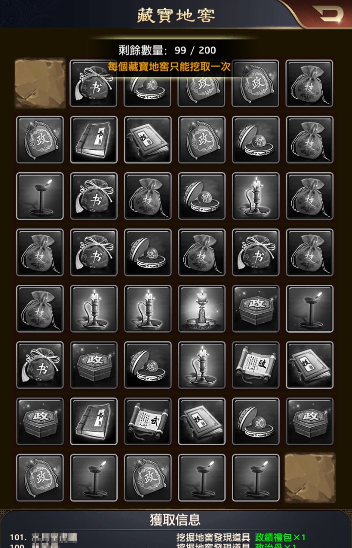 - 武力卷軸、智力卷軸、政治卷軸、魅力卷軸(尚未遇過)