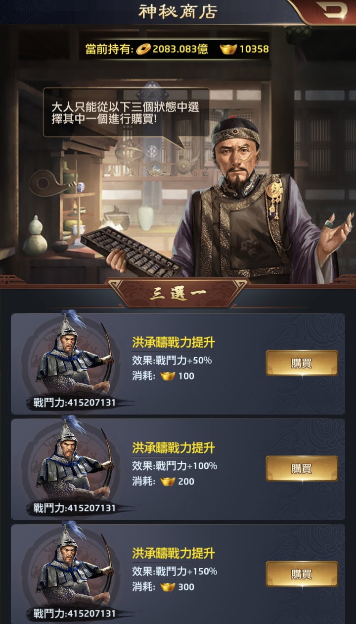 神秘商店則是隨機出現門客戰鬥力加成。