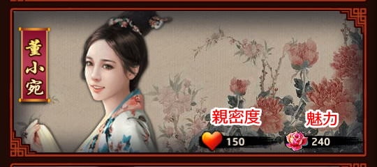 | 親密度:關係到「紅顏技能」的解鎖,以及紅顏生育子嗣、培養子嗣的屬性高低。 |
