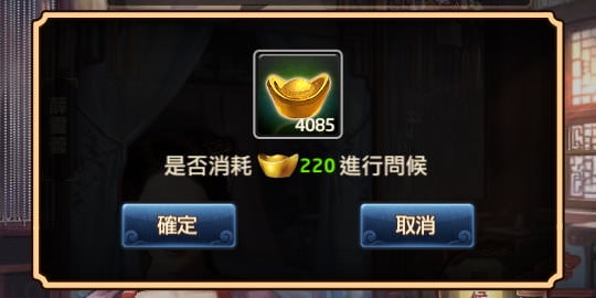 問候須花費 親密度 x 10元寶,上限為 1,000 元寶。