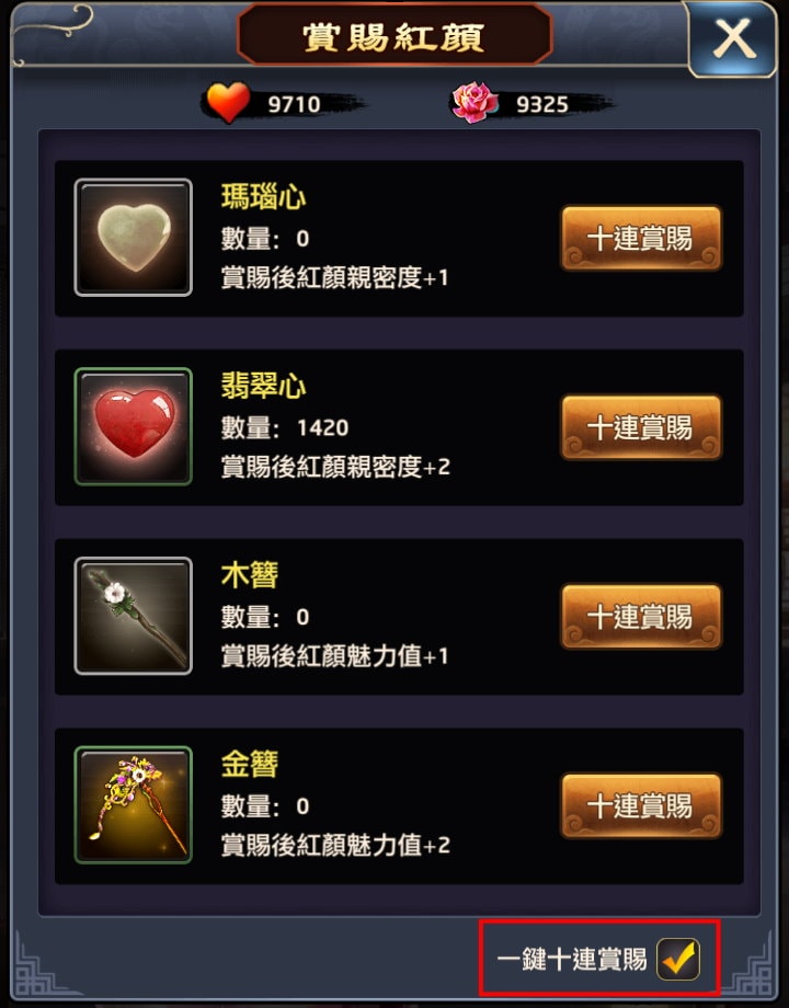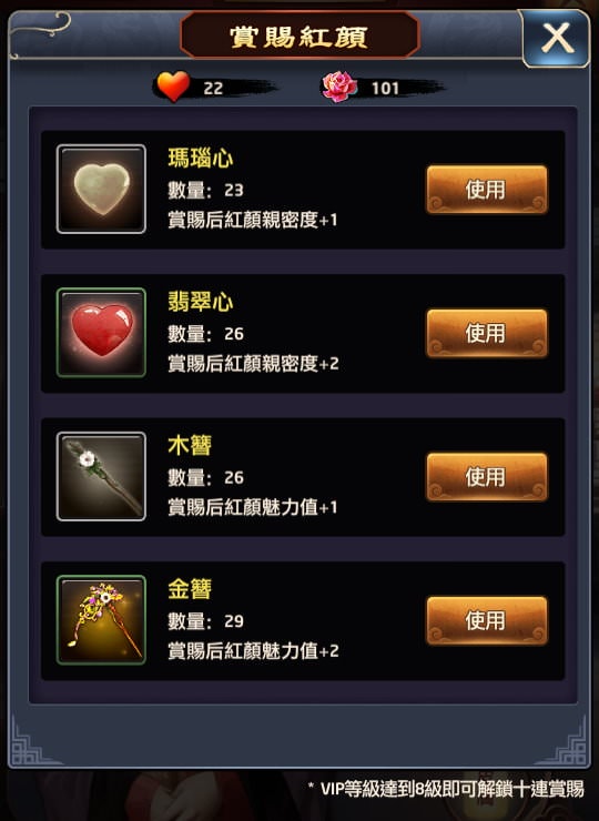 賞賜紅顏能增加紅顏親密度與魅力值。