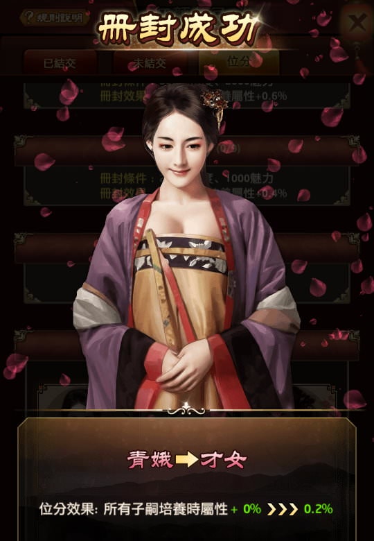 | 子嗣加成:紅顏位份 |