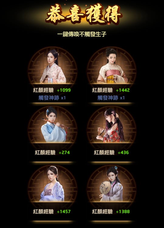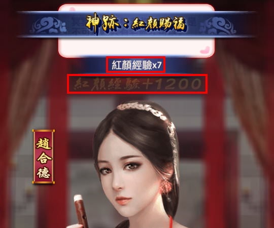| 2, 被傳喚到的紅顏,獲得「紅顏經驗」。 |