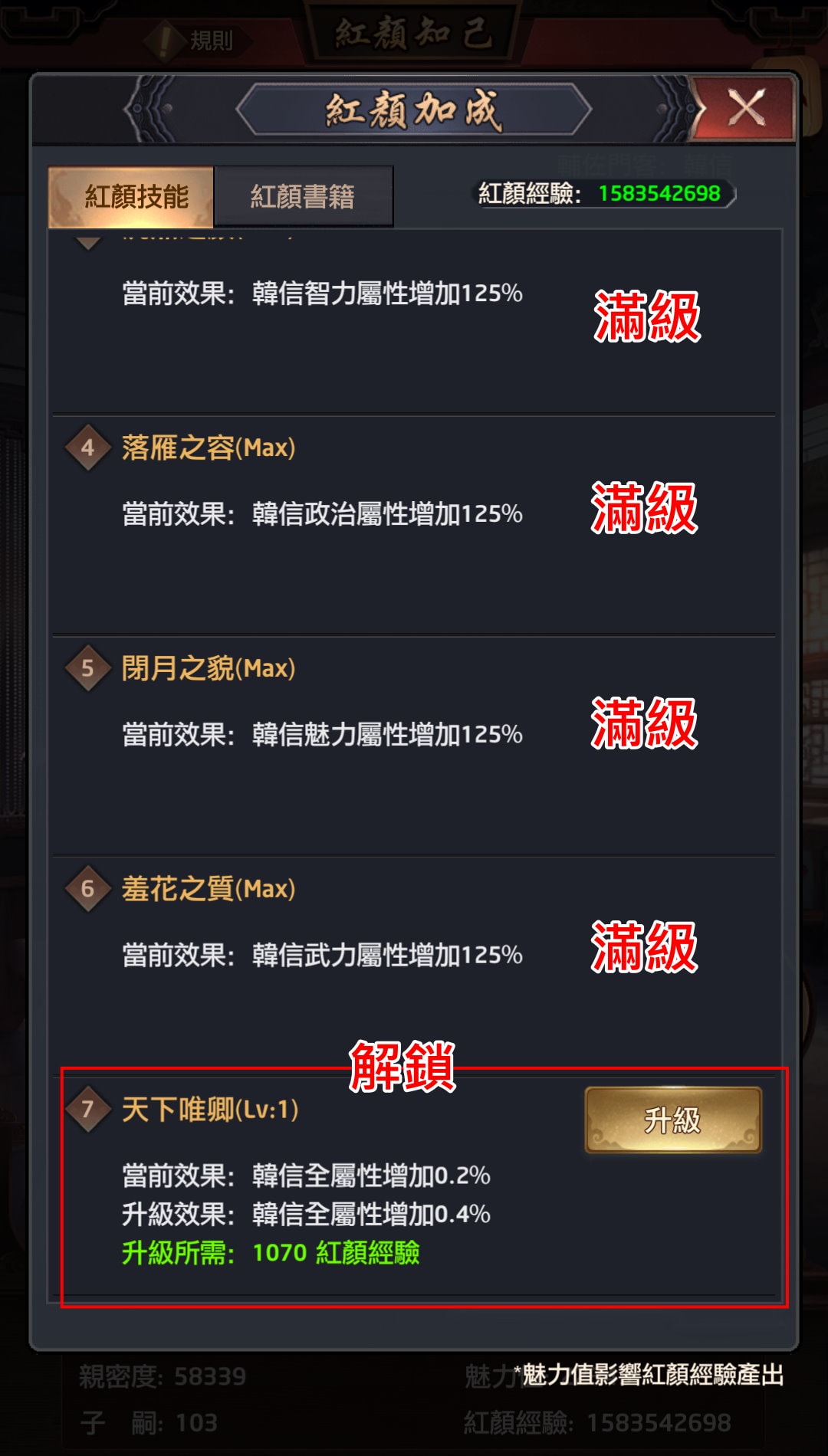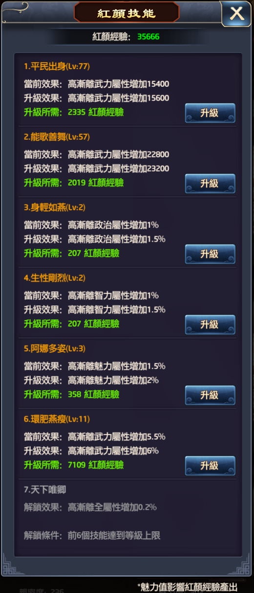 | 紅顏技能:紅顏經驗 |