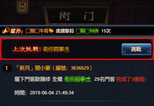 這邊有個應用技巧是說,如果你很早(凌晨、中午、或下午)就決定要打某個玩家,你可以先用挑戰書打一場,讓他出現在「上次挑戰」,接著才去打你基本出戰4次+出使令,待衝榜結束前若發現分數不夠,再趕緊從這邊連續挑戰n次直到你要的分數為止。