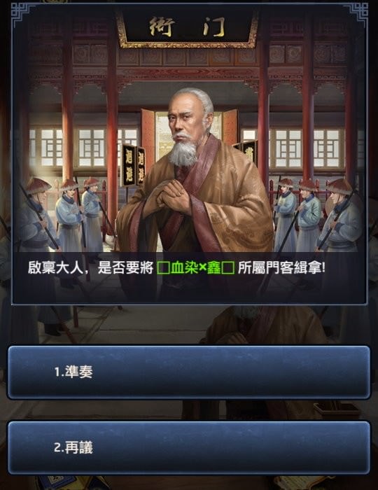 點「衙門」時,會出現「某位門客」要緝拿「某位玩家」的請求,會抽到哪位門客出戰是「隨機」的,會遇到哪位玩家也是「隨機」的,但會是跟「衙門分數排名」相近的玩家打。