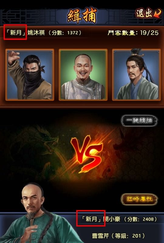 此時可以點右上角的「退出」,此時會維持著「門客緝捕中..」的狀態,不會上榜,但同時也得放棄後面幾場的衙門。