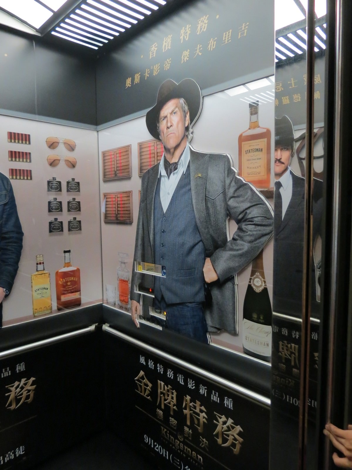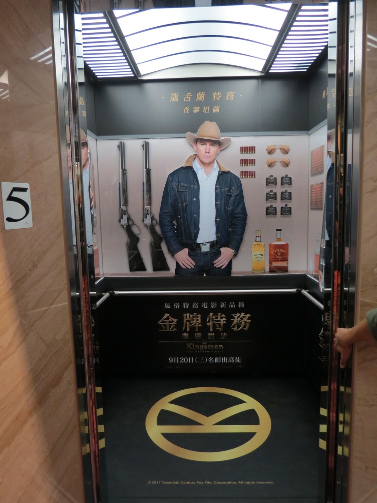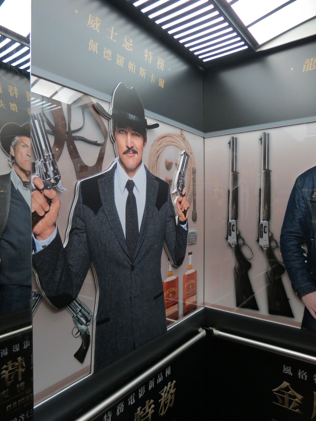 欣欣秀泰3個電梯,進去後3面都是特務與配備的廣告看板,很有意思,不過電梯內空間狹小不太好拍。