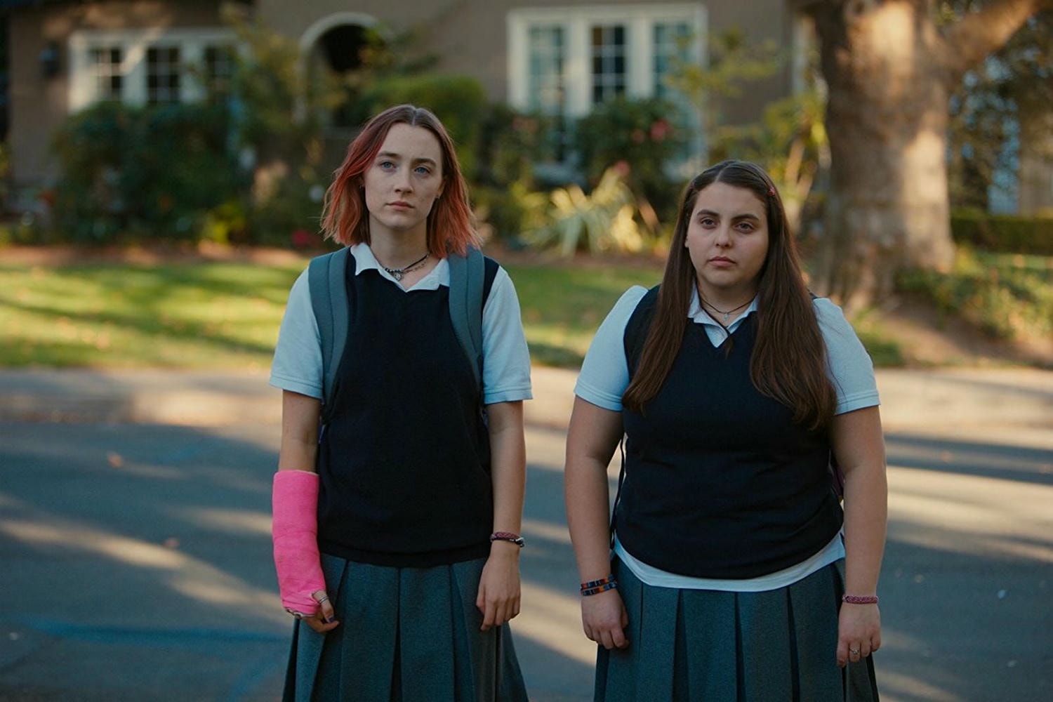 比妮‧費爾德斯坦/Beanie Feldstein 飾演 茱莉/Julie Steffans(圖右棕髮女孩),淑女鳥的好友。