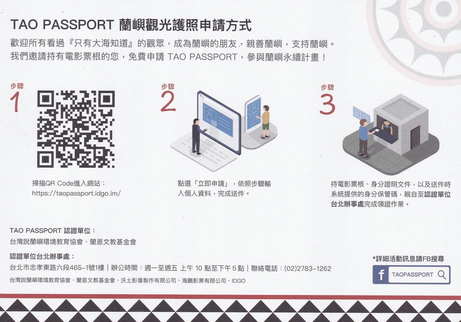 電影相關活動,只要憑電影票根,就可以免費申請「蘭嶼觀光護照」。