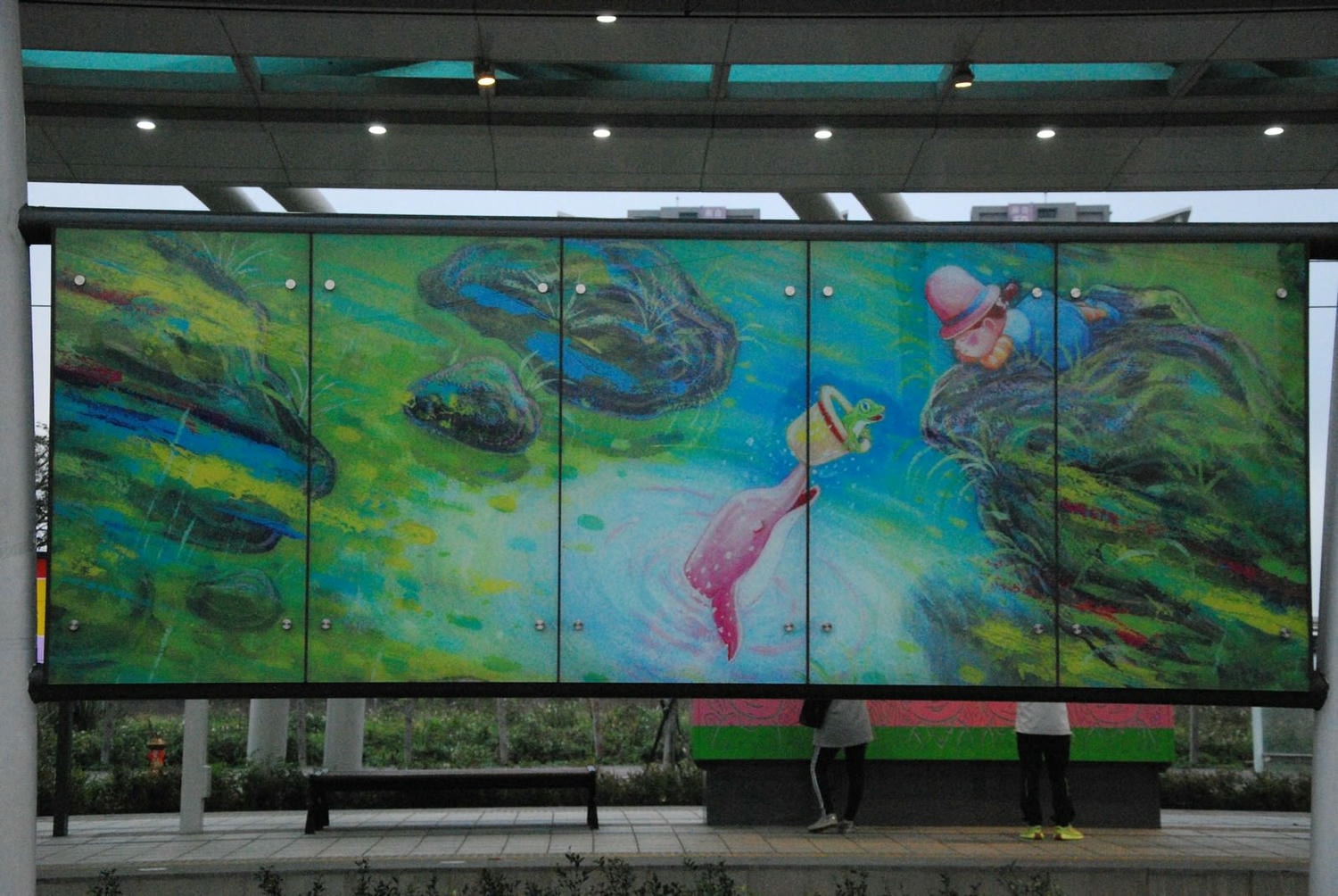 淡海新市鎮站外牆的幾米畫作