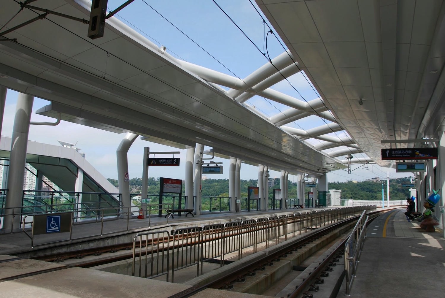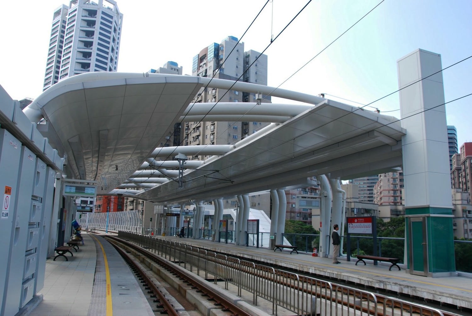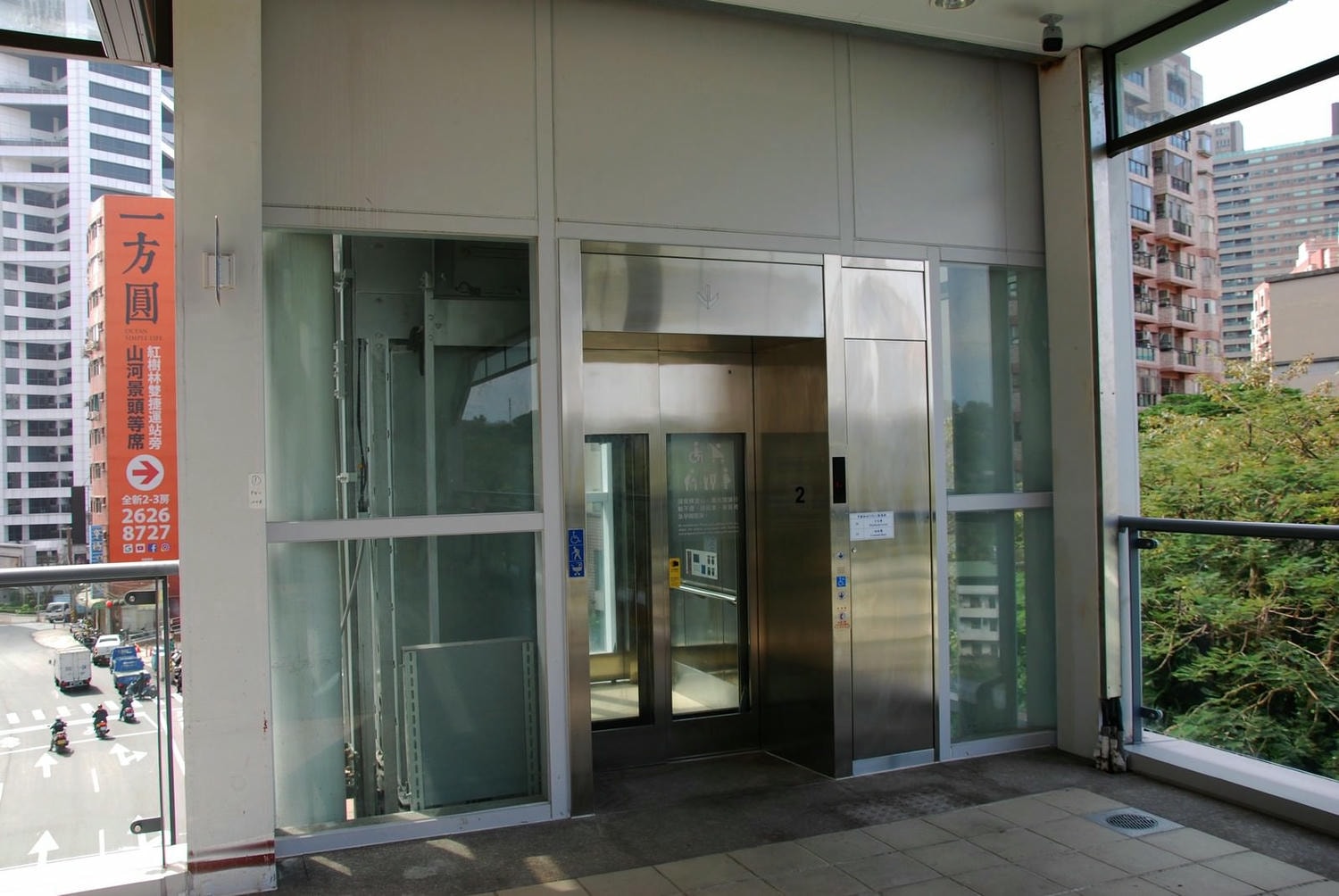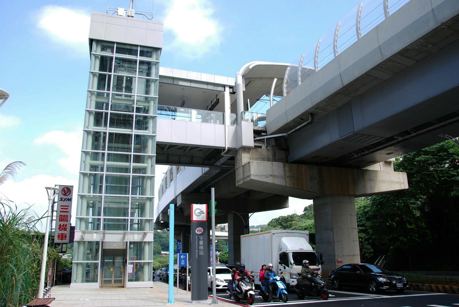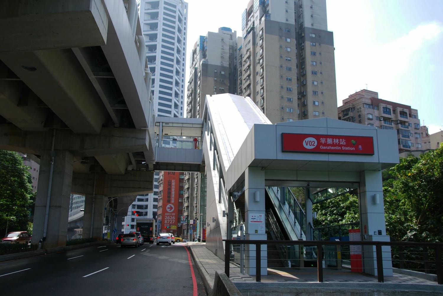車站主體,行駛在淡金路上電梯側的視角。