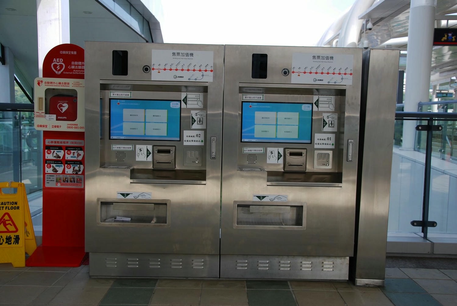 高架車站的售票加值機都是放在手扶梯或電梯上來之後,進刷卡機之前。