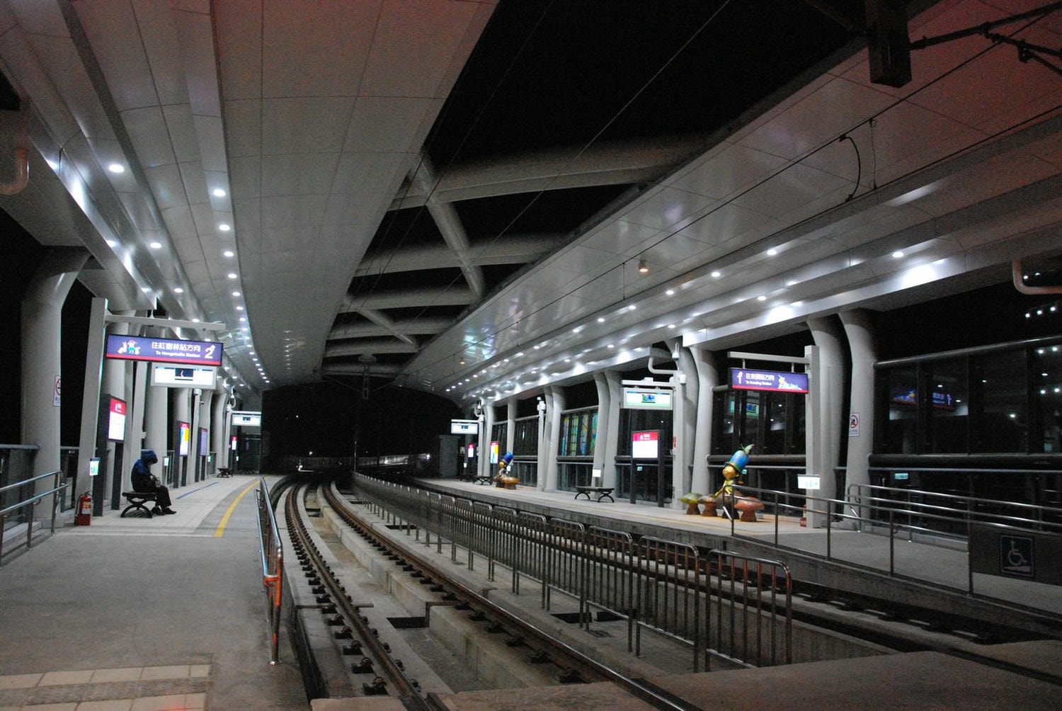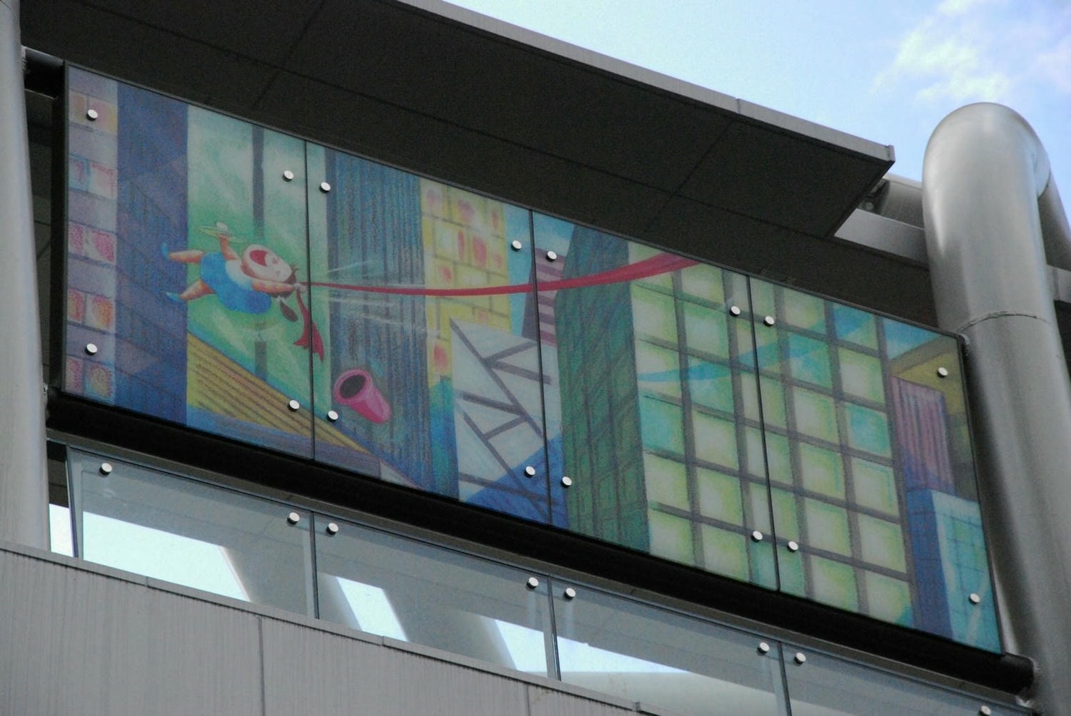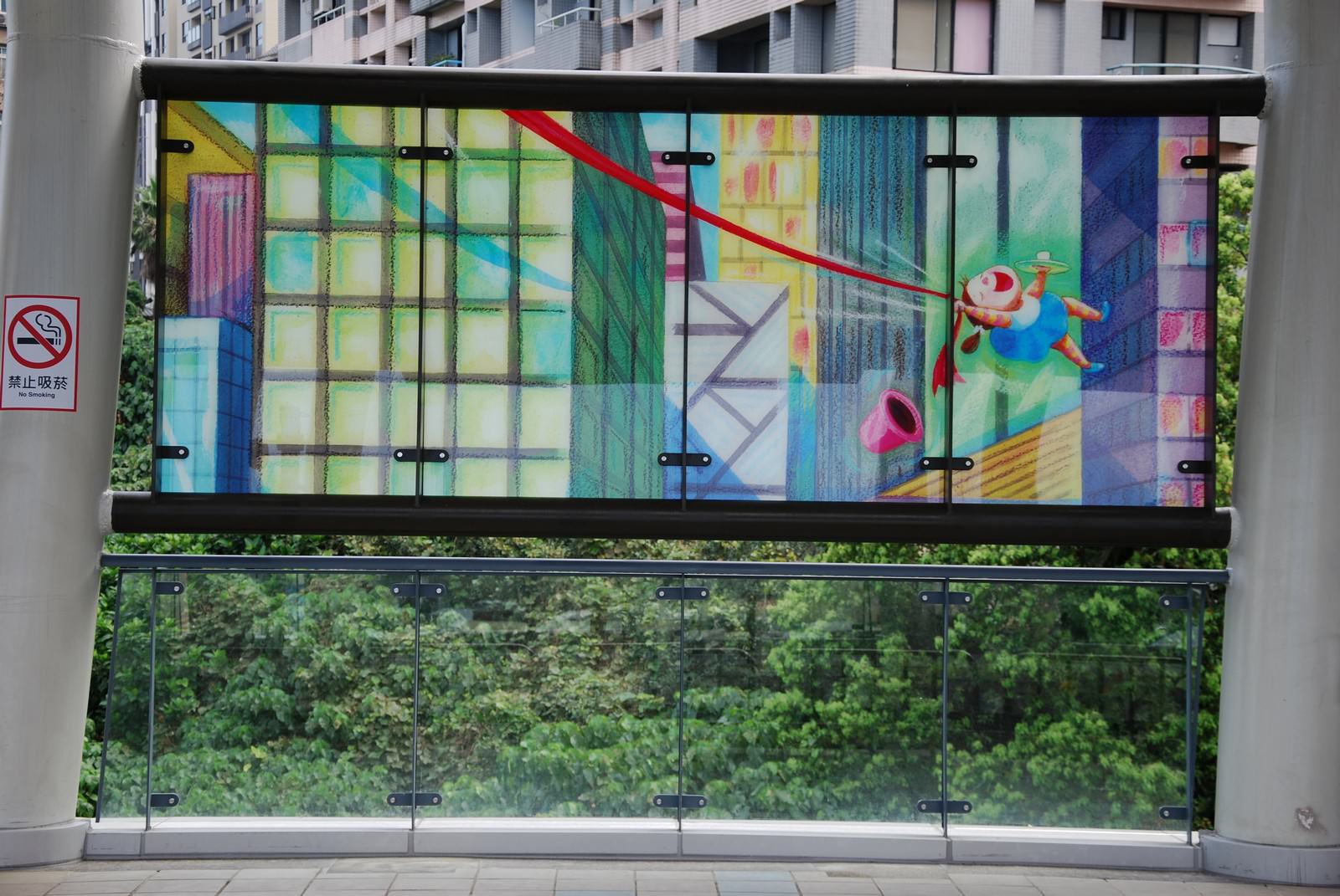 月台上的玻璃牆有幾米繪畫,正面在外牆側。